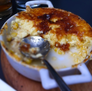 Might have been the Sweet Corn Crème Brûlée. All the dishes were good but this was “let me lick the plate” delicious. Sweet corn in a baked custard that is caramelized and sprinkled with sea salt.