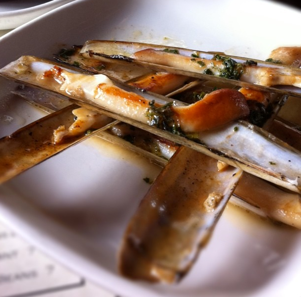 Razor clams. These were actually a little rubbery when they arrived. But in case you’ve never seen a razor clam, here they are. In other amazing stories, we were told by our waitress at the Girl and Goat (coming up) that a customer once claimed she had accidentally eaten the shell of a razor clam. Yet, she wasn’t bleeding from the throat. Or a professional sword swallower –as far as anyone knew.