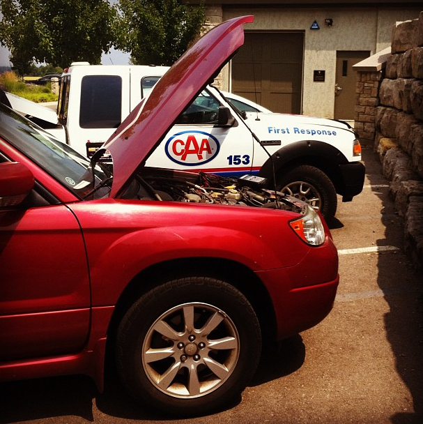 CAA did arrive in quick time. Less than 30 minutes but meanwhile we had been offered a glass of wine by the people at Tawse and while we stood in the beautiful, air conditioned store area, one of the Tawse gentleman (why did I not ask his name? Sorry) went out to see if he could get the car running.