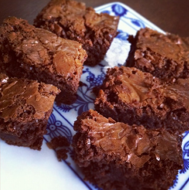 I had offered to bring a dessert to a friend’s house this weekend (she was making dinner) and needed something that was both adult and kid friendly.  In my drawer of recipes I rediscovered this one for “Supernatural Brownies” clipped from the New York Times in 2007.  I  made them many times in 2007 and then kind of forgot about them (either that or I’ve been in a chocolate coma and just woke up in 2012).  Other than the fact that they’re not dairy-free (my friend Meredith can’t eat dairy–and I totally forgot that too) they seemed perfect.