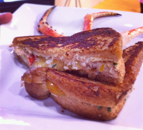 Yum, if you love crab dip, this is your man-wich from Chef Howell. The crab dip is made with cream cheese, marinated artichokes, fresh parsley and some hot sauce.  There as also a hint of smokiness from smoked Gouda and real crabmeat–of course.  Recipe here.