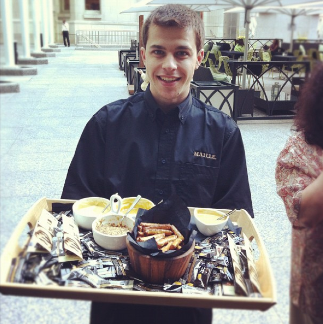 I inquired what made the Maille mustard different from other “dijon” brands. The distinction is that when Maille cuts the seeds for the mustard, they don’t crush them–they cut them, which gives the mustard a unique texture and pungency. Which makes me want to do a side by side taste test. (Hmmmm. I’ll get back to you on that.)