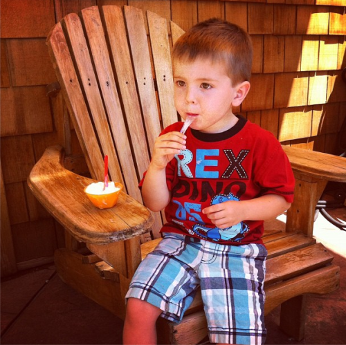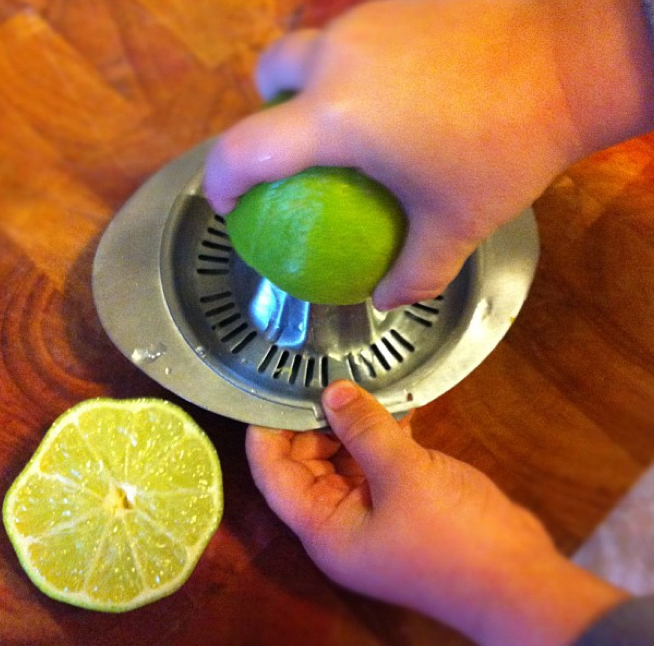 Total unneccessary picture but how cute are Felix’s little hands! Add the lime juice to the pom juice and put it into a medium size bowl. Add 1 1/2 cups icing sugar. (I was a little leery of the amount of sugar but the balance of flavour was good in the end.) Then add in the 2 cups whipping cream. And well, whip it, whip it good! It will be light and fluffy and a very very pretty.