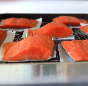 So it’s not wild salmon season yet. Right. I was so excited about the smoking portion of the experiment that I did not think of the fact that I wouldn’t be able to get wild salmon at this time of year (what goodness is there in life before May?). I wanted the rich flavour you get from wild salmon so ended up with frozen (sustainably caught) sockeye filets.