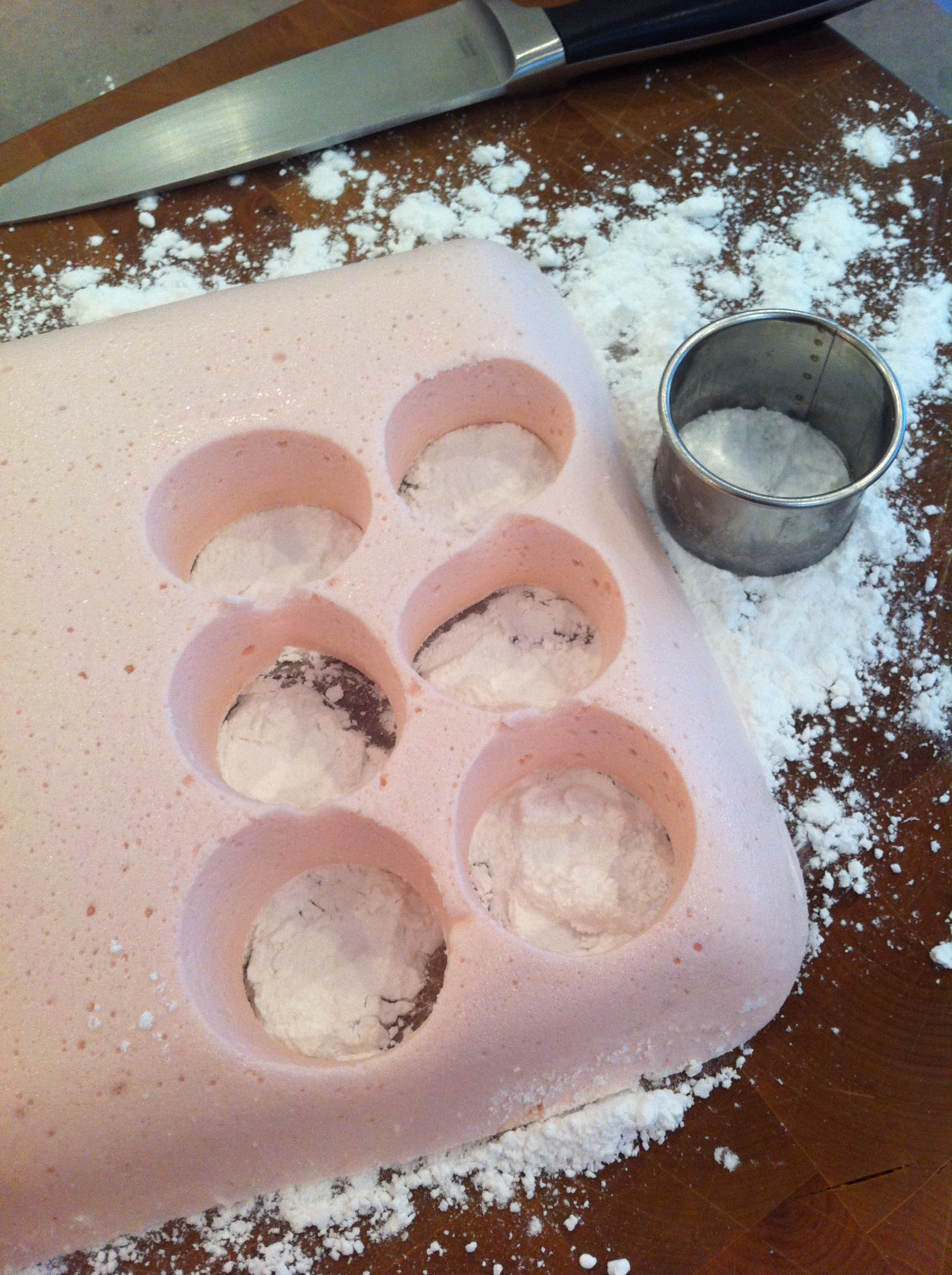 Then I put them into the oven at 225°F for 3 hours (Yasmin says to you’ll need about 2.5-3 hours in the video). When I took them out they were (as instructed) sticky to the touch but did not seem to cling to the back of a spoon. The point being that you need some moisture in them or they will dry and crack (not roll). I allowed them to cool. And then instead of using a knife or pizza cuter to portion them, I just cut them with scissors.